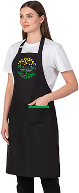 Boyundan geniş kuşak askılı aşçı önlüğü.