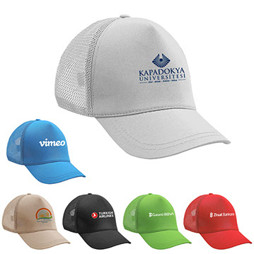 Promosyon, özel baskılı, fileli şapka ile fark yarat. Gabardin Kumaş ve Fileden Üretilmiştir. DTF Baskı veya Nakış Baskı Seçenekleriyle